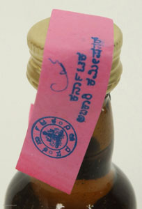 After the end of the tax-stamp-obligation in 1986, these "Fake Tax Stripes" were made by the producer to signalize that the duty is paid.